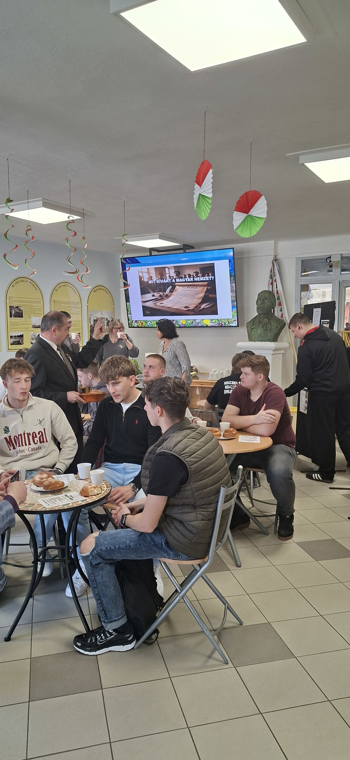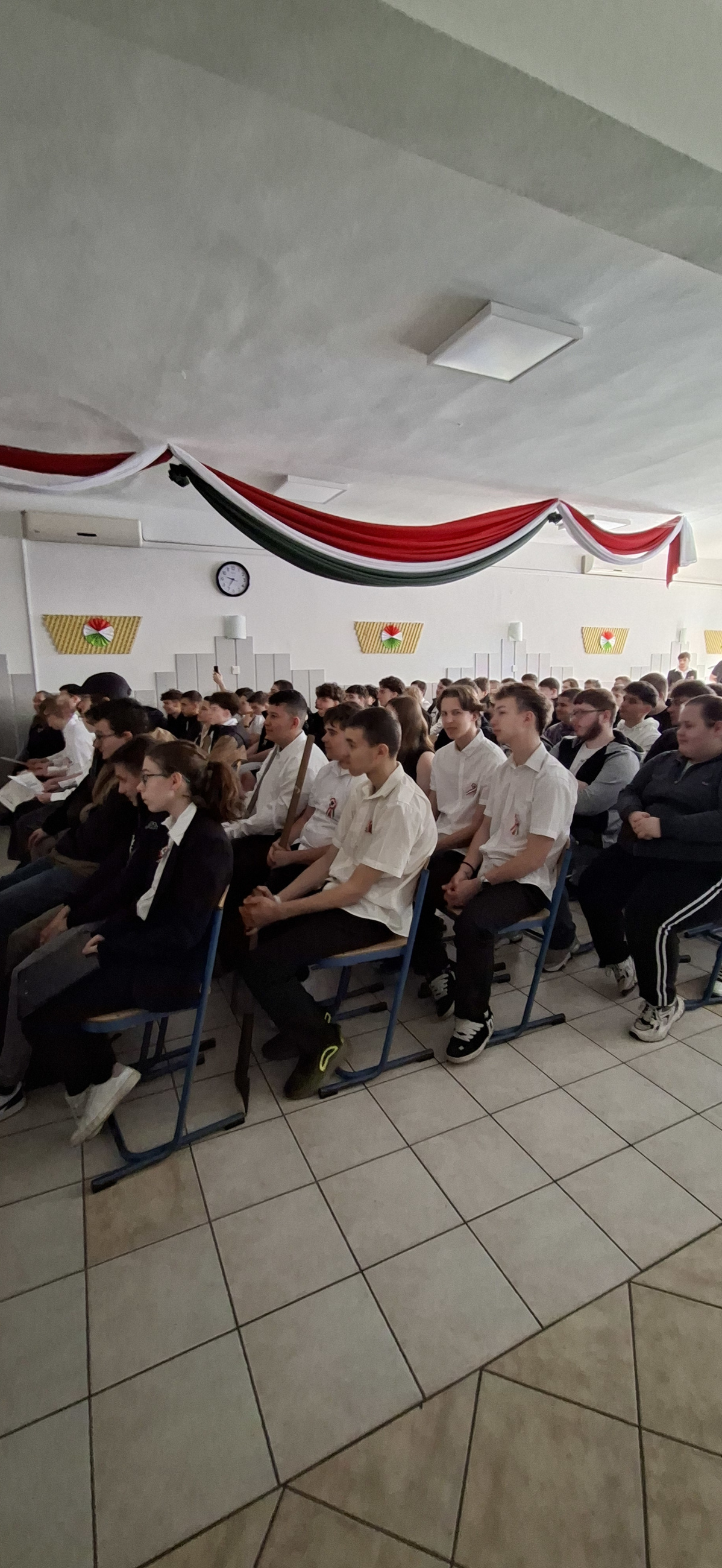 A műsor során a korabeli dokumentumrészletek által megelevenedett a „csabai krónikás” alakja, aki hitelesen közvetítette a forradalmi lázat, majd később a szabadságharc leverése utáni fájdalmas csendet is. Az előadás emlékeztetett minket arra, hogy a történelem nem csupán évszámok halmaza, hanem hús-vér emberek sorsa, akik itt, a mi utcáinkon élték át a magyar szabadság legfényesebb napjait. A diákok előadását filmrészletek, zenés aláfestések és történelmi nagyjainkat megelevenítő AI videók tették még emlékezetesebbé.