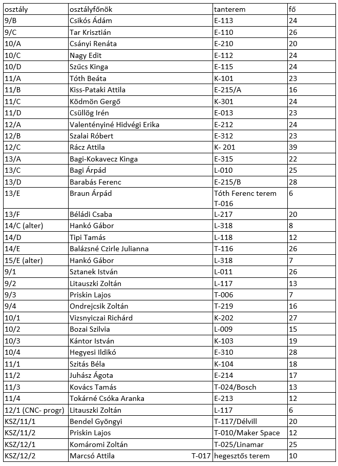 Terembeosztás a szülői értekezletre