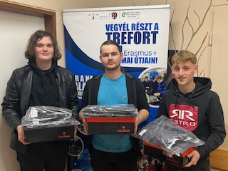 November 9-én kelnek útra Forgácsné Hegedűs Zsuzsanna kolléganő kíséretében. A kiutazó fiatalok: Fekete Róbert, Horváth Levente, Kamasz Darnel, Gyenge Richárd Dominik és Zsoldos Zoltán Ferenc mind a villamosipar területén fognak szakmai gyakorlatot teljesíteni. Külön örömünkre szolgált, hogy 3 diákunk munkaruha és munkavédelmi bakancs támogatásban tudott részesülni az Erasmus+ program jóvoltából.