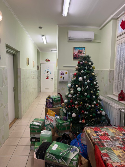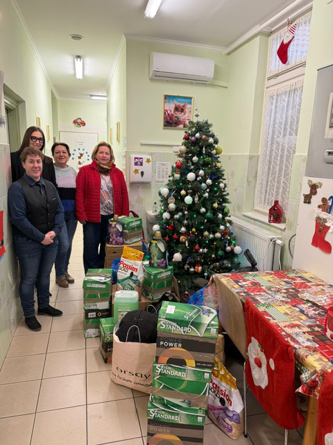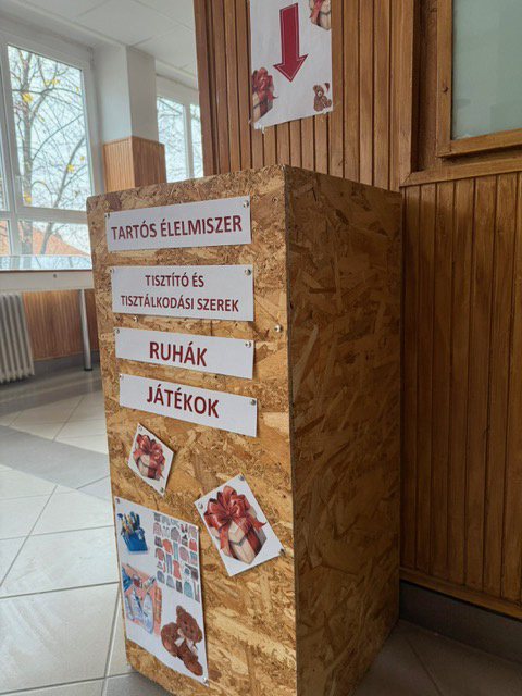 Az elmúlt évek egyik legsikeresebb adománygyűjtésének kézzel fogható tárgyait a mai napon átadtuk a békéscsabai Családok Átmeneti Otthonának. Játékok, ruhaneműk, tartós élelmiszerek és vegyi áruk kerülhettek tanulóink és dolgozóink felajánlásából az otthonban élők karácsonyfája alá.