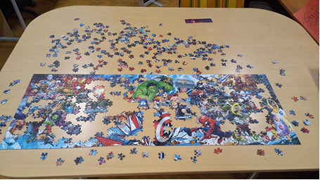 Jelenleg egy 1000 darabból álló Marvel karakteret ábrázoló kép kirakása zajlik, és már csak a végső elemek helye nem tisztázott.