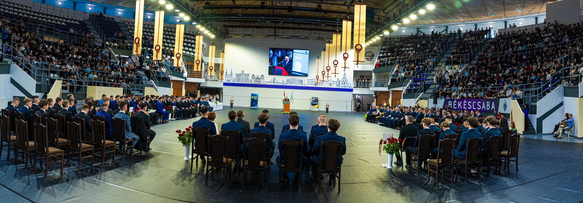 A szalagok feltűzését kisfilmek vetítése, majd az osztályok műsora tette még inkább emlékezetesebbé. Az eseményre a helyszínt a Békéscsabai Városi Sportcsarnok biztosította.
